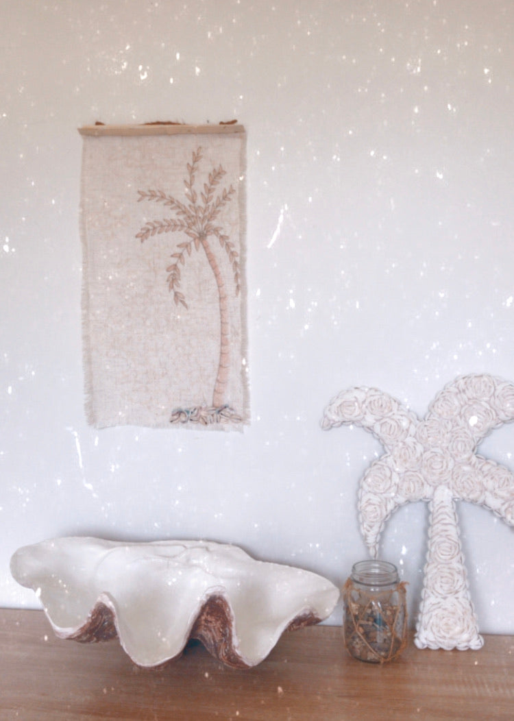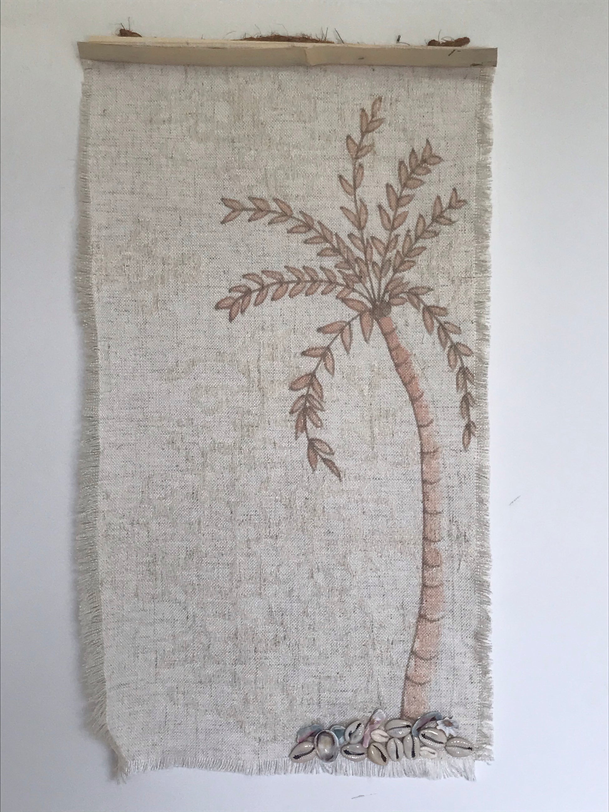 Island Vibes is a beautiful simple handcrafted piece for the wall. A Pretty coastal boho design, a perfect wall hanging for your home. Made from Cotton linen and shell details.